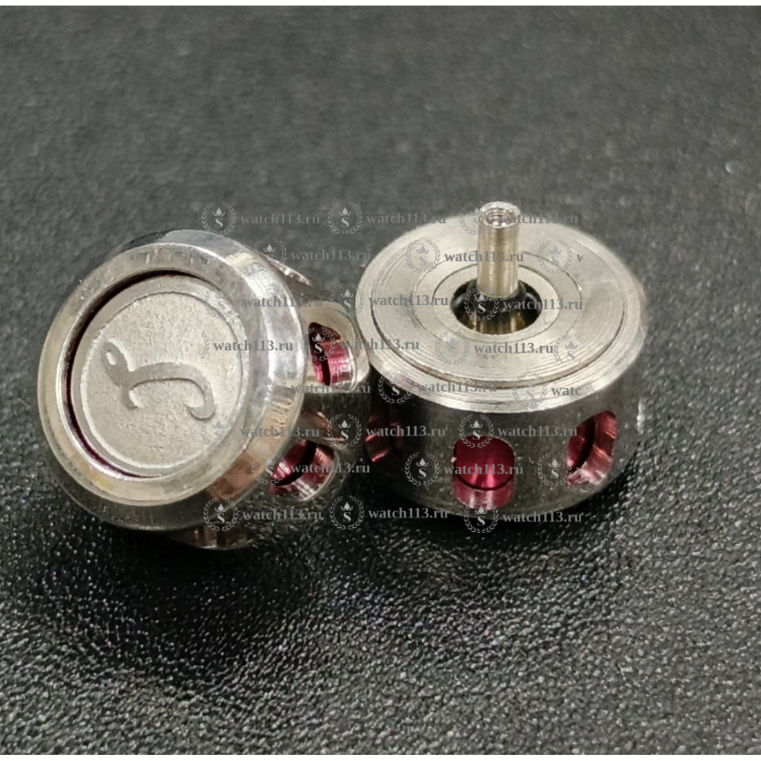 Головка для часов IWC серебристая с розовым , диаметр 9мм,внутри 2.5мм